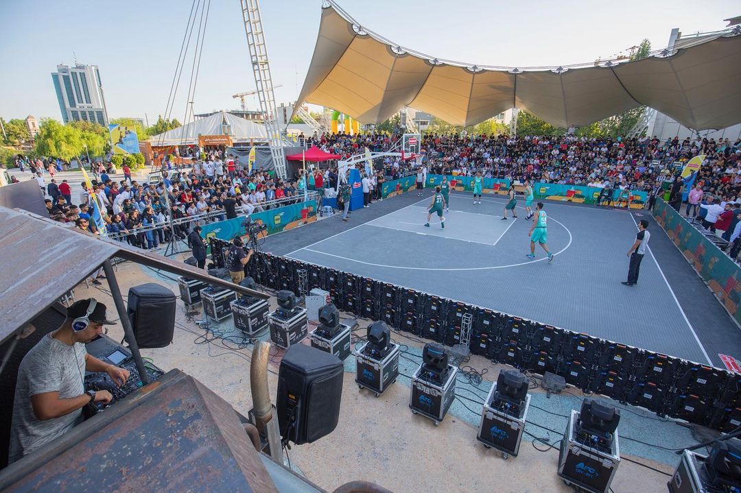 The street basketball tournament (3x3) was held on July 27-28, 2018 in Ab-o-Atash Park by order of Iran national team player Samad Nikkhah Bahrami. In this project, which was carried out in cooperation with theRedLine Company, the construction of a basketball court suitable for the outdoor area, 200 meters of LED screens around the court for field advertising and large screens to show games for spectators, outside broadcast unit for broadcasting matches, Live music performance DJ, the digital sound system suitable for 10,000 spectators, the ambience lighting for the lighting of the game seasons and the effect lighting for the visual effects, the construction of the stage for the spectators was done by Nava Media Jam Company.